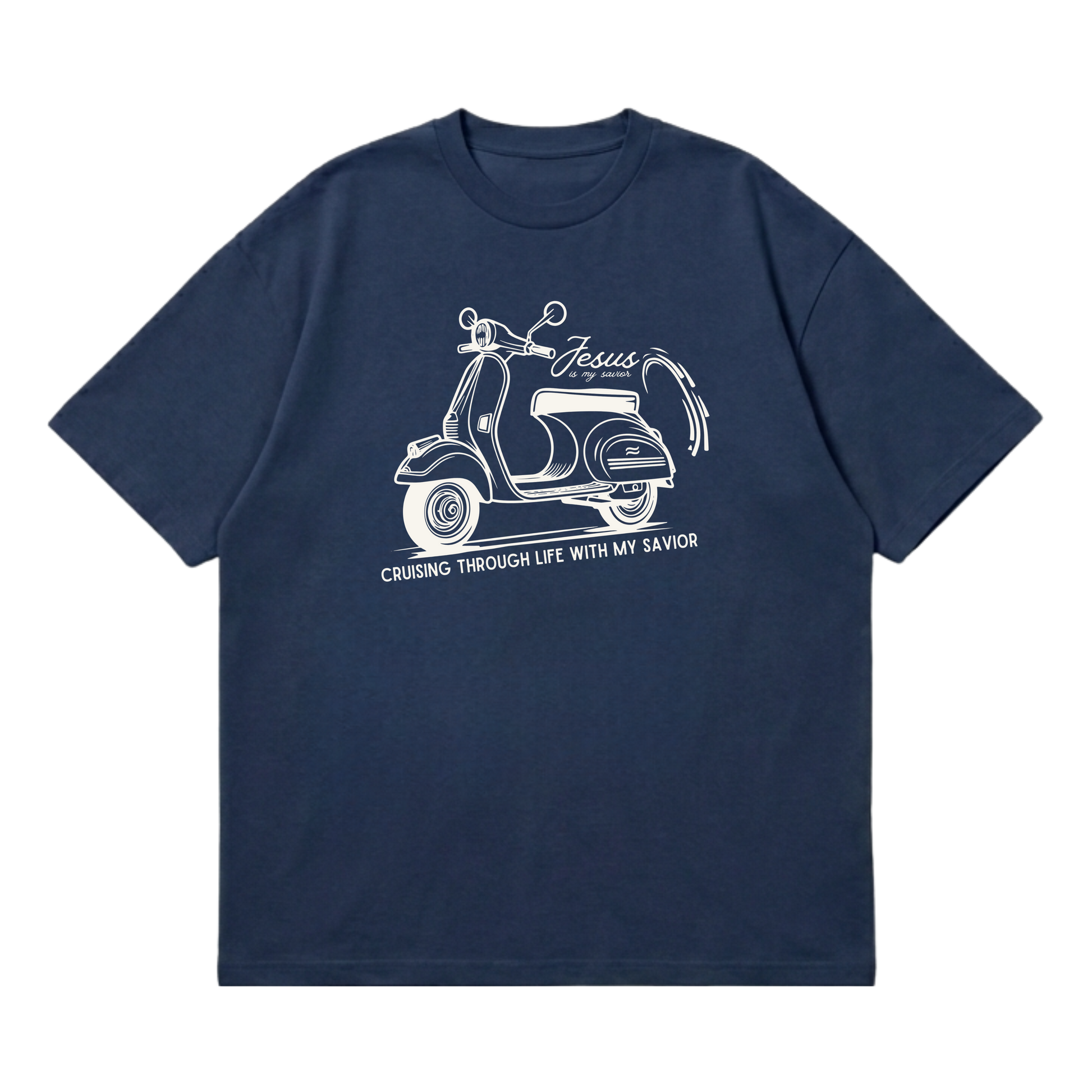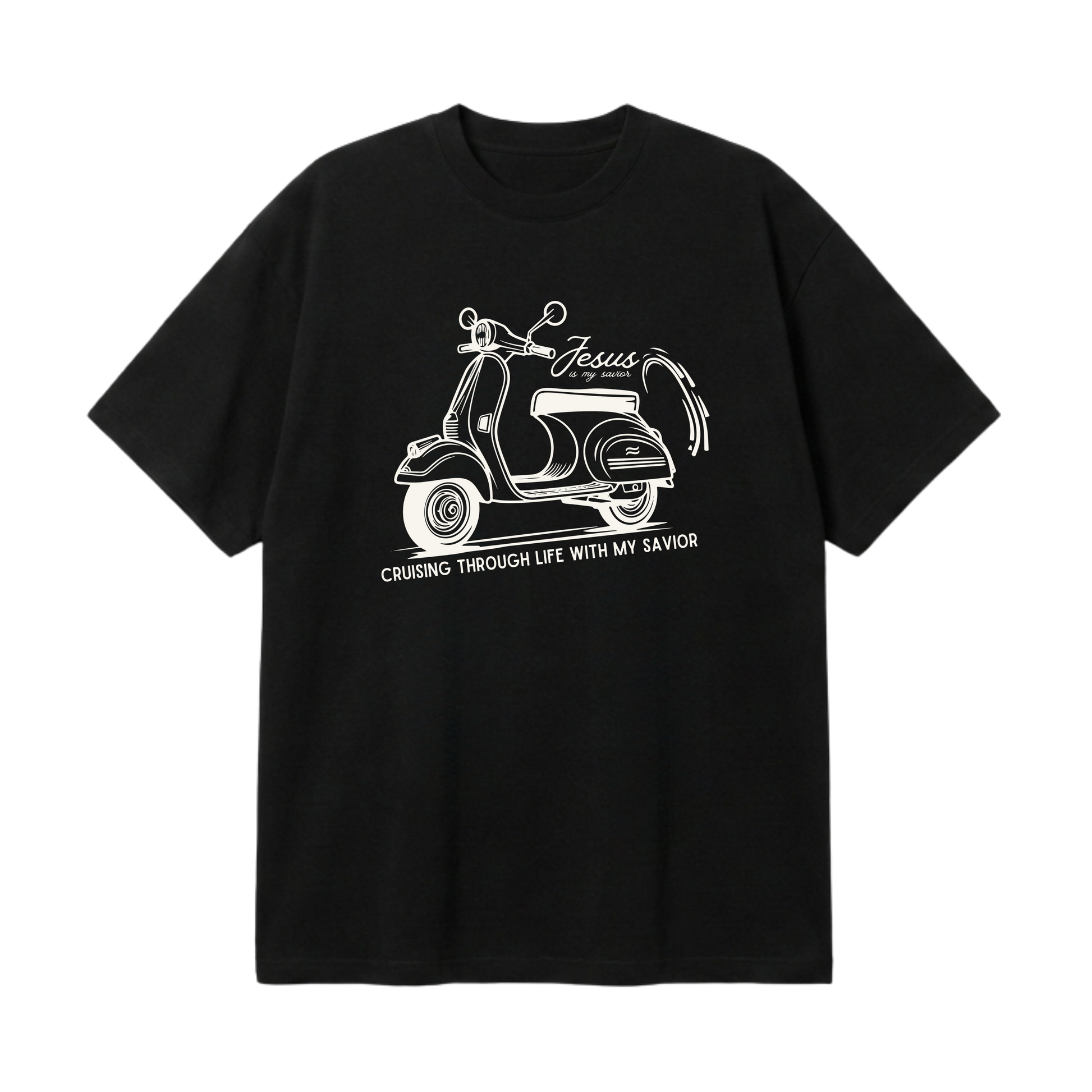 Cruising with My Savior was created for those who love the road — riders who find freedom, clarity, and joy in motion. This design declares that faith doesn’t get left behind when life speeds up. Because Jesus is with you through every turn, stretch, and stop. Whether you’re cruising streets or navigating life, you don’t ride alone.
